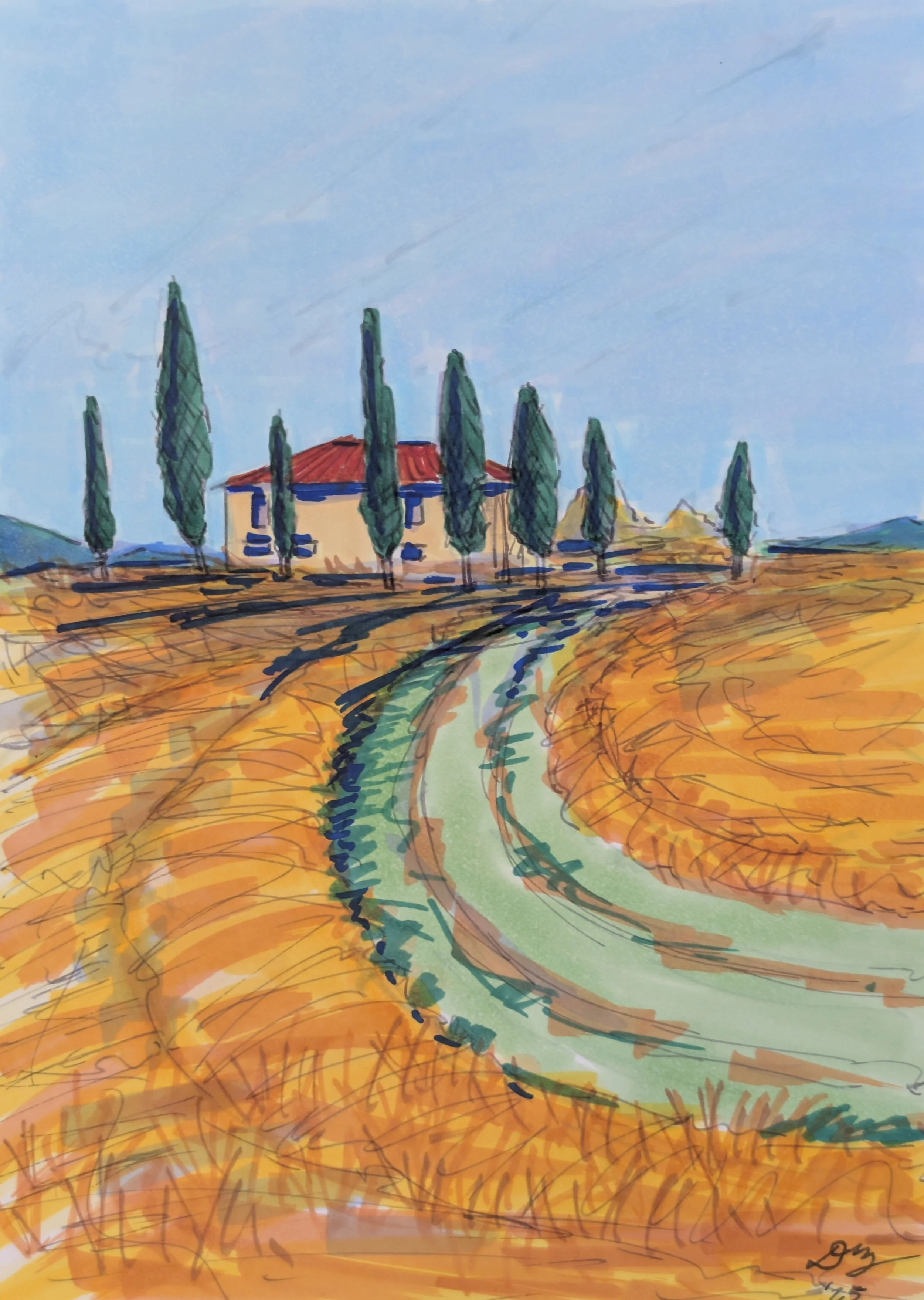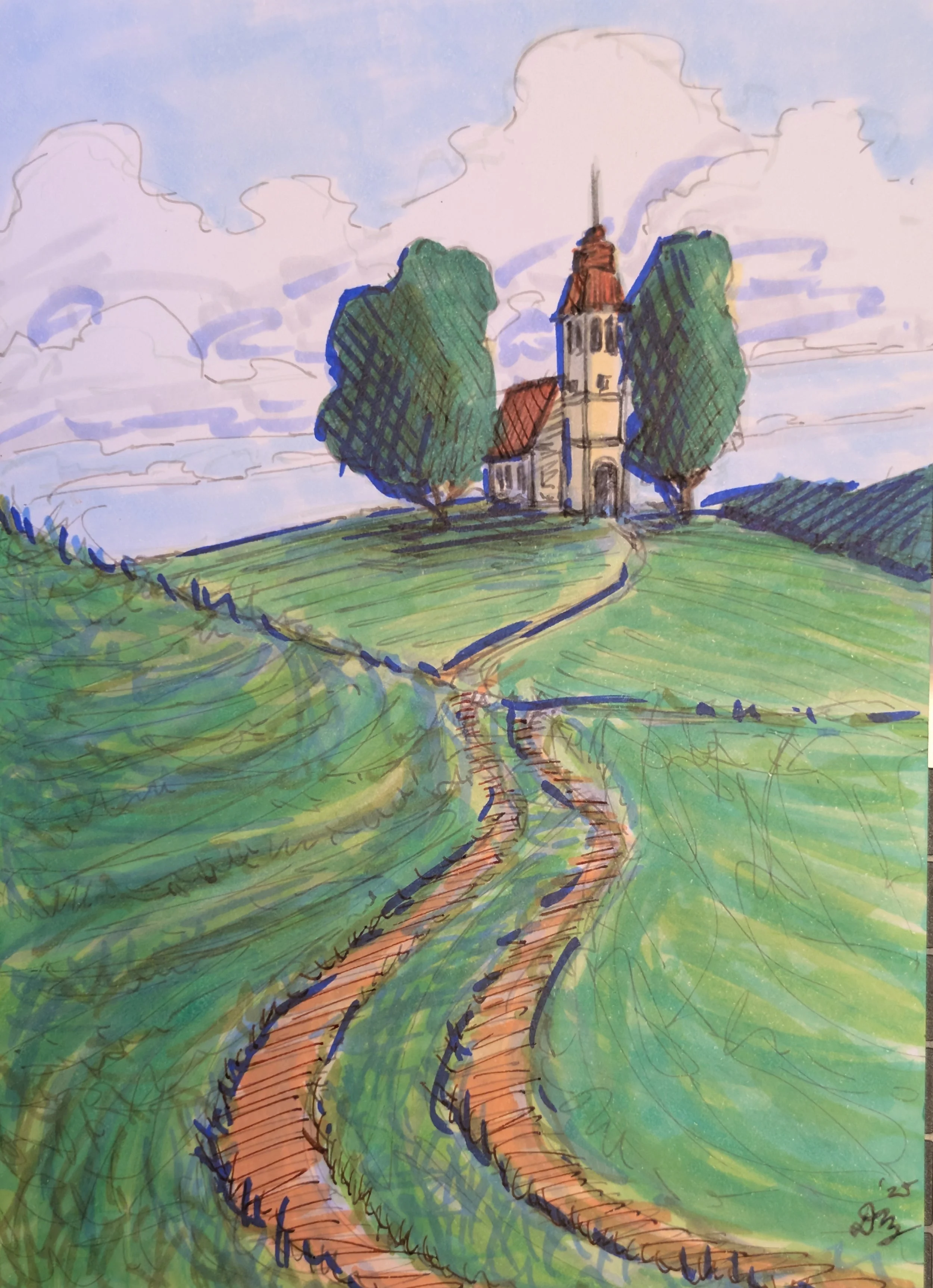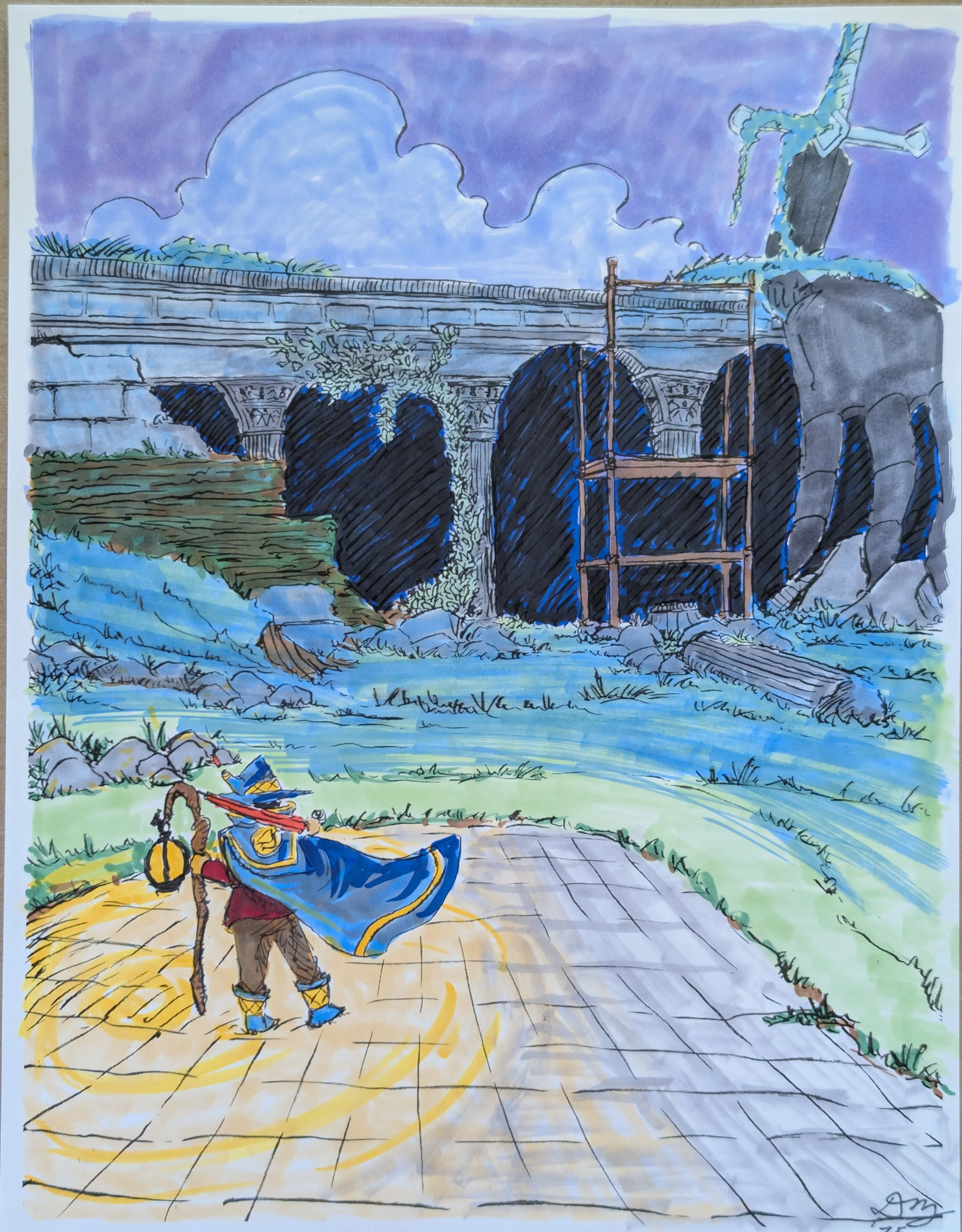 “Before the Ruins” - marker and ink on Bristol board, 9”x12”